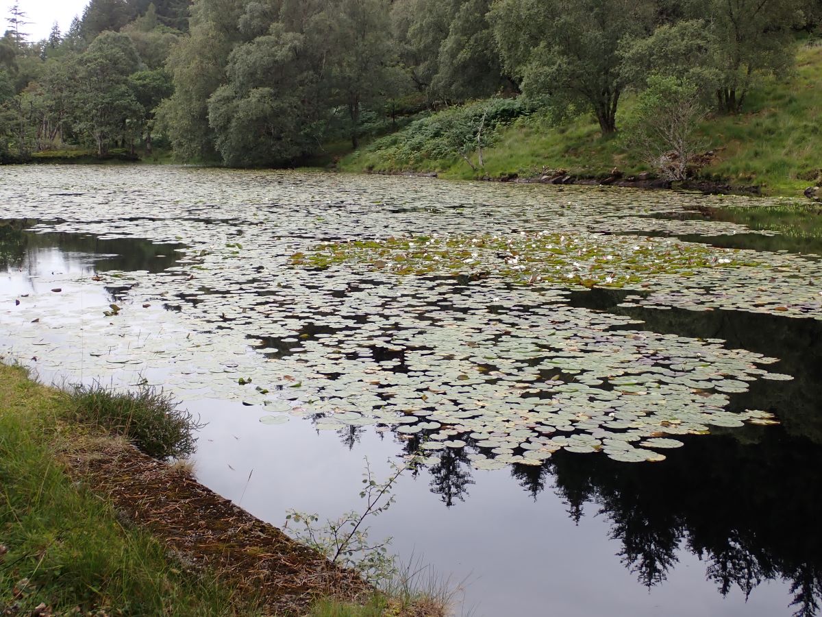 Cue for a song ... "What a difference a day makes"! This was certainly the case on Sunday 11th August when seven paddlers set off from Samalaman west of Glenuig to paddle to Eilean Shona. Despite the week before being plagued by strong winds and some torrential rain the forecast remained good for the chosen date. On the day the sun was shining, and the midge were even forgiven for enjoying the windless conditions! The sea on the coast facing west by Smirisary was still somewhat fractious from the previous gales and there was some swell, but the group made good time as they paddled south and turned in to the north channel of Loch Moidart just after high water to land at Baramore on Eilean Shona. After a quick change from paddling to walking gear, they set off to walk clockwise round the island. The path was very wet and muddy at the start, but after passing Shepherd’s Cottage and the Old School the going was much easier. The track hugged the north channel before turning south towards the main cluster of houses around the pier. Here they stopped to have a look at the ruins of an old water driven sawmill by Doireaneighinn. This mill was powered by water piped from a large reservoir which is now a beautiful lily pond. A further half kilometre took them to the welcoming village hall where lunch was eaten before they set off again past Eilean Shona House where the vehicle track runs out. The going again turned wet and muddy as the group climbed through the forest, which was littered with fallen trees, victims of past storms. As the path climbed out of the forest the group was rewarded with fine views out over the islands which guard the entrance to the south channel, before turning north above Bailetonach to tackle the steep "Saddle" which would lead them back to Baramore. From the high point of the Saddle more splendid views opened up right over to Kentra Bay and beyond.