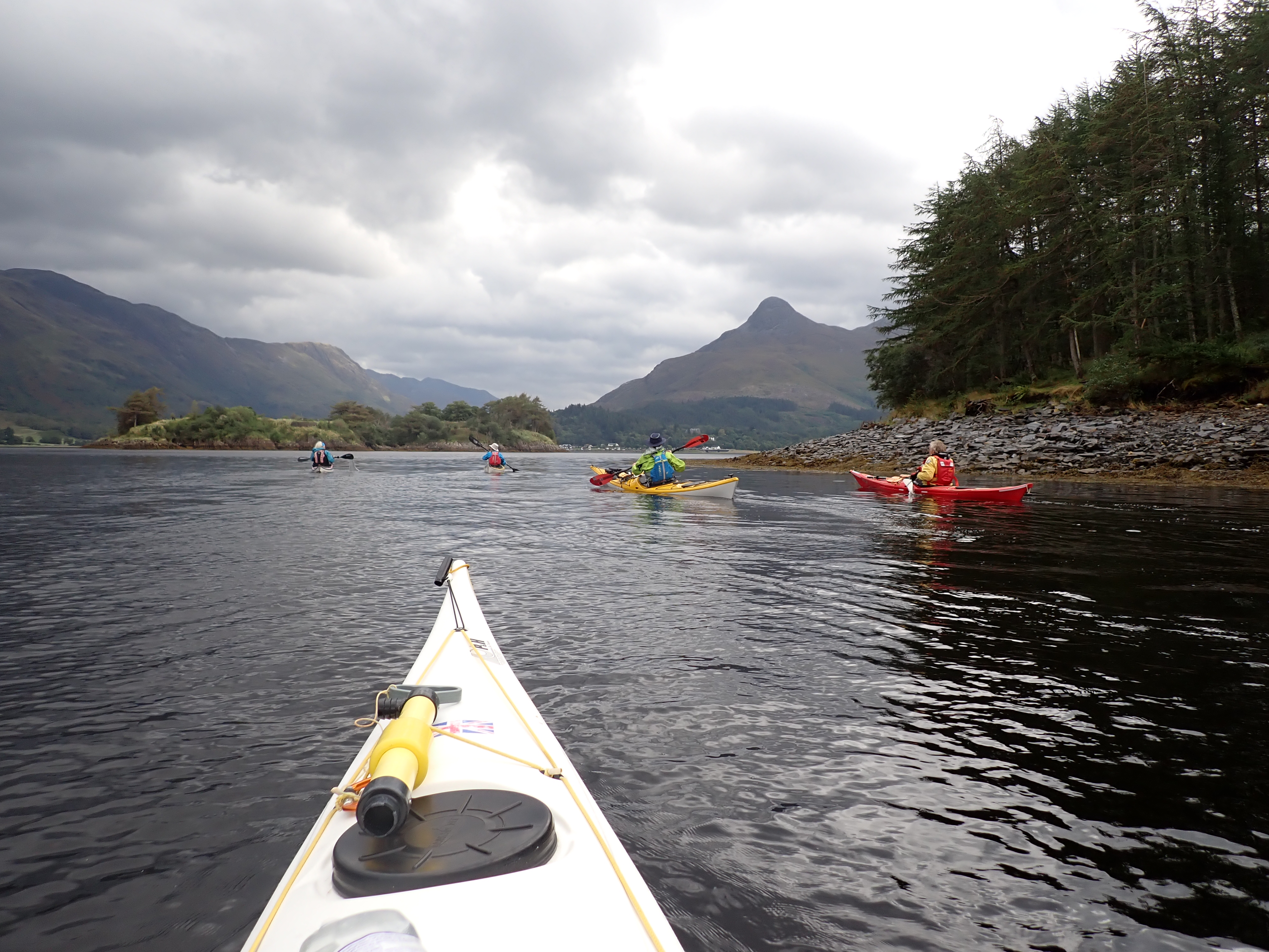 Another plan hits the dust as northerly winds and swell scuppered plans to paddle Troup Head on 24/25th September. However, a very pleasant alternative was hatched in the form of a one day paddle on Loch Sunart. On the 25th September, five paddlers set off from the picnic site just west of Salen and paddled to Dun Challain where they stopped for elevenses. This island and its Dun (fort) was well placed to watch for invaders coming from the west and making their way far inland to Strontian.