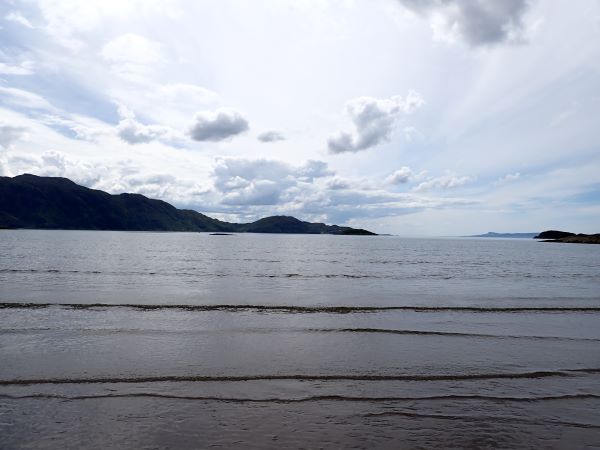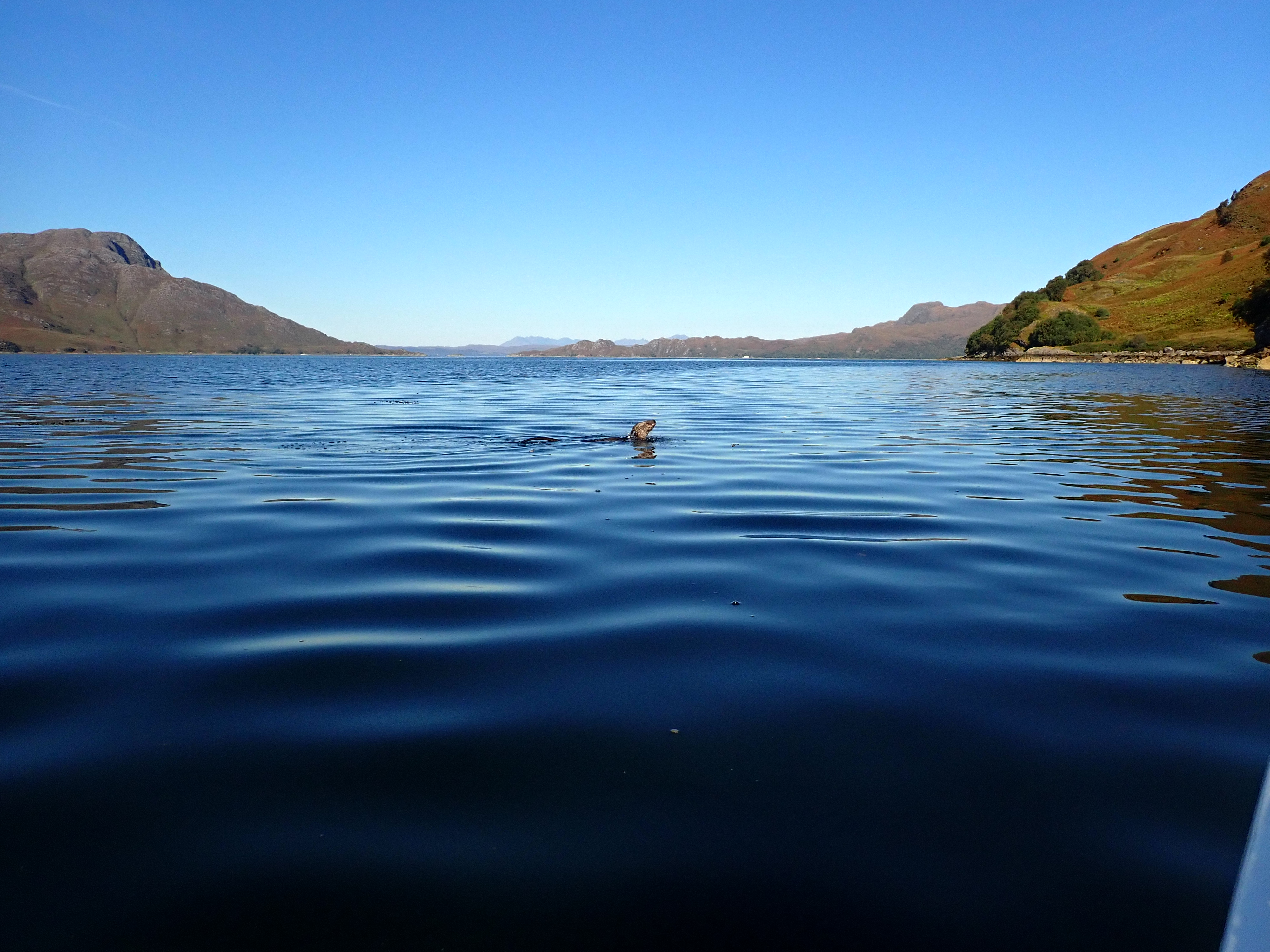 Six paddlers gathered at Shieldaig on a dull and breezy Saturday for the start of the first part of the Club�s Summer Cruise from Shieldaig to Loch Carron. As it was around 1pm, the group made a quick lunch stop at Camas Ruadh before setting off into a stiff wind across the mouth of Upper Loch Torridon and along the north shore of Loch Torridon before crossing to the south shore from Araid. The aim was to camp for the night at Fearnmore just south of Rubha na Fearn. However no suitable campsite was found and as the wind had dropped and the sea had turned to flat calm it was decided to round the point and camp at Cuaig. Just before rounding the point they were lucky enough to get a close up view of a couple of hunting otters. Tired after a long day the group soon had their tents pitched, dinner eaten and settled down for a well-earned sleep!