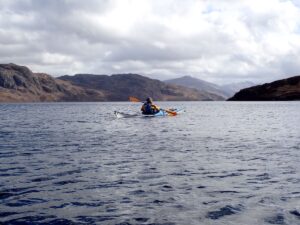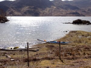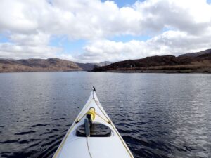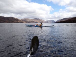 On the day one paddler pulled out and another had a last- minute padlock emergency and only two members left the sheltered bay of Ceann an t- Saideil and island hopped across the loch to the south shore which was sheltered from the southerly winds. After a brief stop at Lettermorar the pair headed round Eilean Allmah before crossing back across the loch to Brinacory Island. A quick lunch was eaten as the wind was gathering itself again to gusting F5 and the paddlers encountered some large waves coming at them broadside. After 7km of constant adjustment to the wave patterns the pair made it back to the take out. A good workout and some great scenery along the way!