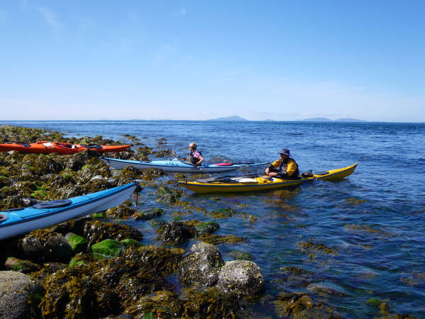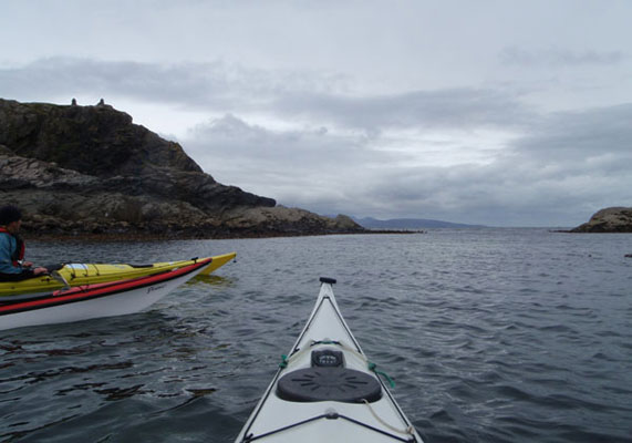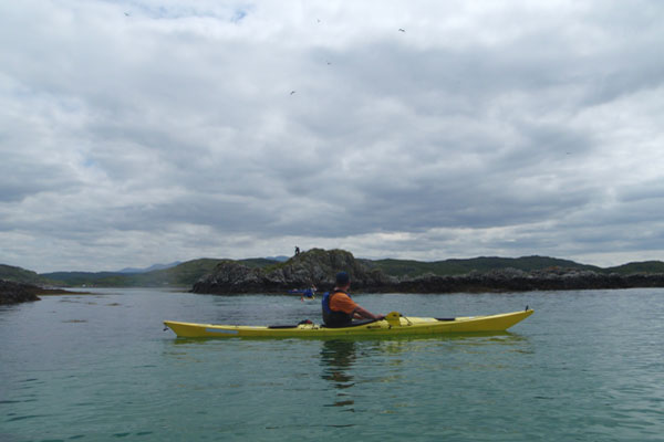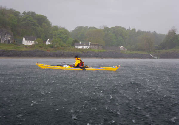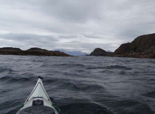 The following day a group of seven paddlers set off from Broadford Bay to paddle to Caolas Scalpay. The sun made a welcome appearance and sea conditions were flat, so it was decided to return to Broadford via the south shore of Scalpay and round Guillamon Island. The wind, however, had not read the script and, having rounded the island, they faced a slog against strong headwinds until they got into the lee of the Skye shore.