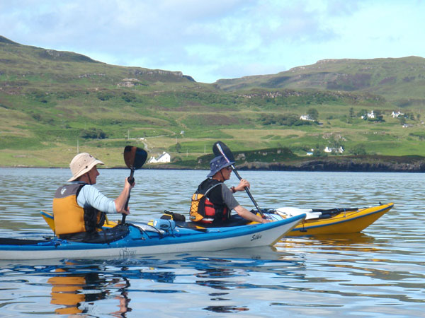 The plan to paddle over two days round Neist Point on the Duirinish Peninsula on the west coast of Skye was quickly scrapped on Friday evening as 6 paddlers foregathered in the campsite at Dunvegan and discussed the weather forecast for the weekend. It was clear that at some time in the next 36 hours strong winds up to gale force 8 were due in the Minch - not weather to be caught on the unforgiving west coast of Skye! So two day paddles it was to be, and the comfort of the excellent campsite!