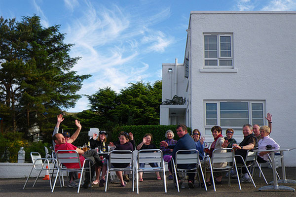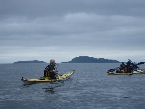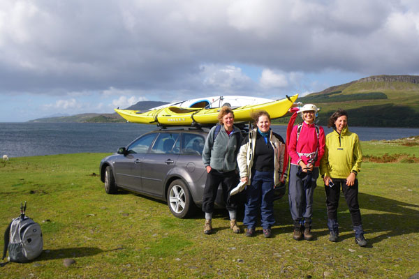 The following morning we were up smartly for the short paddle to Tarbert in sunny, calm conditions. Unlike us, two French yachtsmen anchored off the harbour weren’t too happy about the lack of wind for the start of their return home. After landing, we had found the local tea shop (which served excellent coffee) and then wheeled our boats aboard the ferry for the crossing back to Uig. Total distance paddled: 74.5km. Paddlers: Elizabeth Laidler, Tony Laidler, Joan, Smith, Roger Wild, Bill Skeoch, Dave Cummins |