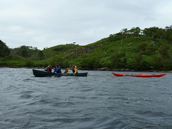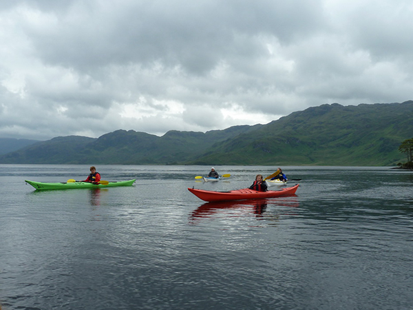 The weather Forecast had not looked good on the days running up to the designated "Family Day" on Loch Morar. However the strong winds that had been forecast earlier in the week did not materialise, and the five adults and three children who had bravely signed up enjoyed a day exploring the islands on the Loch in sea kayaks and a canoe. It was overcast and chilly with a brisk breeze, but once in the lee of the islands, the water was calm and the sun even blinked out briefly! Lunch was eaten on the jetty on Eilean nam Breac, the most southerly of the islands. After lunch the group paddled round the east of the islands opening up views up to Brinacory Island and beyond. After a leg stretch at Morag and John's bay it was back to the starting point at Bun an Loin bay where the children enjoyed mucking around in small boats while the adults loaded the sea kayaks and canoe on to the trailer. Big thanks to Josh Kingswood for driving the trailer.
