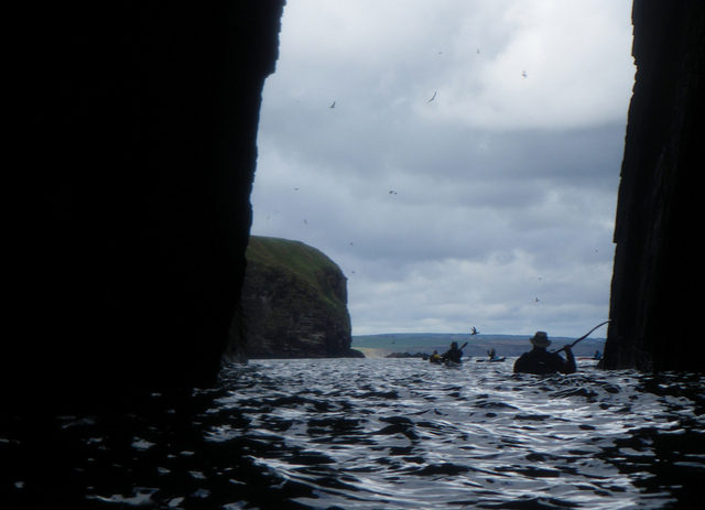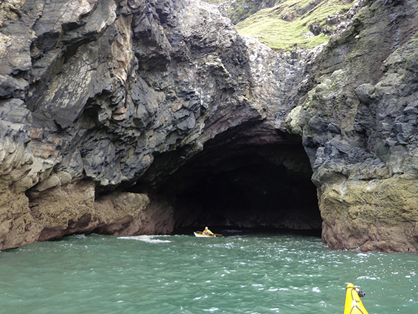 The morning had been good but the afternoon was a crescendo of caves and arches and one free falling waterfall. The sea dropped nicely although the sun never quite made it out from behind the clouds. All the ins and outs and playing around made it a journey of 24 km. Food and refreshment was taken that evening in that suitable establishment near the campsite.