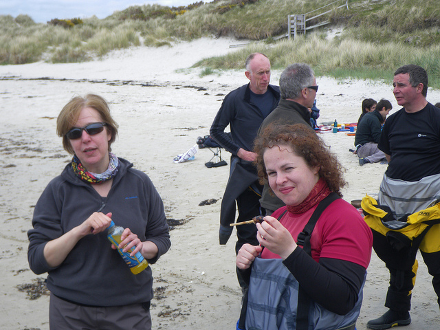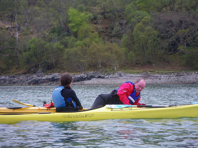 14 paddlers braved the chilly waters of Samalaman bay to practice bracing, towing, bow rescues, assisted rescues, self rescues, paddle float rescues, re-entry and roll and rolling. New ideas were a variation on using a stirrup and the Kiwi method of assisted rescue. Paddlers were Mike, Sheila, Roger W, Michelle, Graham, Iain, Jo, Elaine, Roger L, Ruth, Jill, Kirsty, Bill, Allan. Shore assistance: Jane |