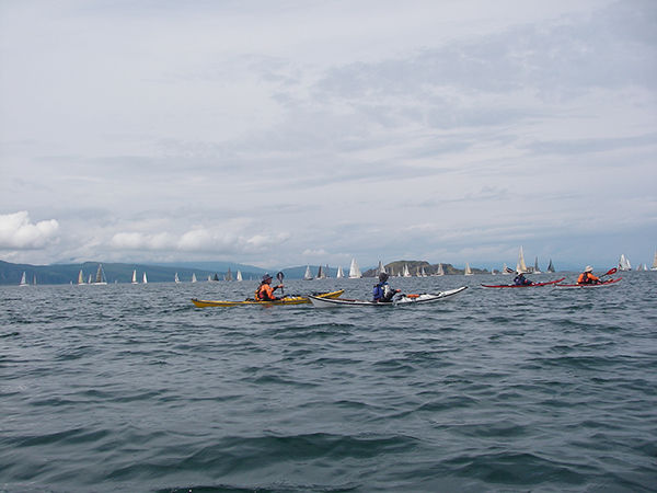 Sunday morning greeted us with rain and cloudy skies. We were in no rush as we had plenty of time to explore the Garvellachs before catching the north-running stream back to Easdale later in the day. The tide was high so departing was much easier than the arrival. We headed south, round by the lighthouse, and up the cliffy west coast of Eileach an Naoimh, popping round the northeast tip to see An Clarsach – a high arch of rock. Progress was slower with a bit of wind and tide in our faces. We had a short stop on Garbh Eileach to try to see the Dun and Burial ground, but it was very overgrown and all we saw was a young woodcock hiding in the bracken. A landing on Dun Channuill to see the ruins of the castle (dating from 1400) was only slightly more successful, but the views from up high were great and the confused waters to the north west of the island in evidence. Once the south-going stream slackened we set off for the tiny islands of Dubh Fheith, mid-way between the Garvellachs and Easdale. The final 5kms. of the journey were greatly enlivened by the huge numbers of yachts participating in West Highland Yachting Week. We were slightly concerned about getting mown down so kept a tight group, but we were fortunate to arrive at Easdale as the last of the groups were heading north and were able to tuck in and scoot round the north of the isalnd and back into Ellenabeich, where we ended the weekend with a welcome pint at the Oyster Brewery before heading our various ways. |