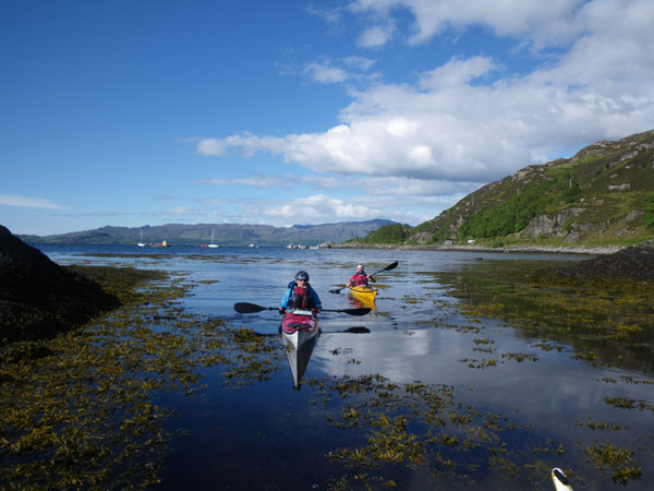 Sunday’s weather followed a similar pattern and we launched from outside the pub, paddling into Loch Sween , east around Rubh’ an Oib and into the tangle of shallow