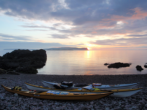 Saturday morning did not go smoothly as Elaine’s van broke down but AA to the rescue and we were on the water only an hour late. With the wind on our backs we cruised down to lunch at Knock Castle and then on for Ice Creams at Armadale. The trip from Armadale to the campsite at Point of Sleat was beautiful, with views to Eigg, Rum, Muck and down to the Ardnamurchan peninsula. The spot we chose to camp was great as it has been so dry; it might otherwise be a very boggy spot. Allan Lindsay was the hero of the day and scouted far and wide for wood so we had a very pleasant evening round the fire on the beach.