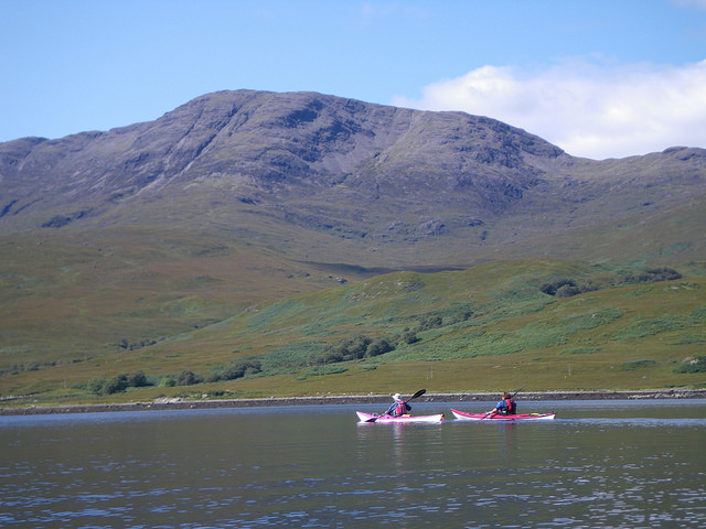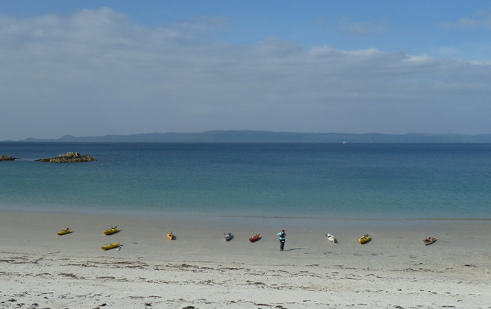 After a car for the return shuttle was left near Kinlochspelve we set off, paddling in sunshine down the loch and rounding R na Faoilinn. Watched by a small flock of feral goats, we came ashore at Port Ohirnie for lunch and were treated to close views of a pair of Sea Eagles.