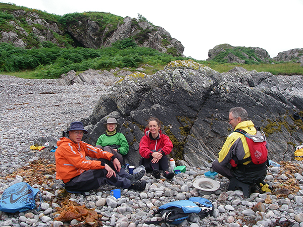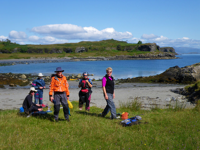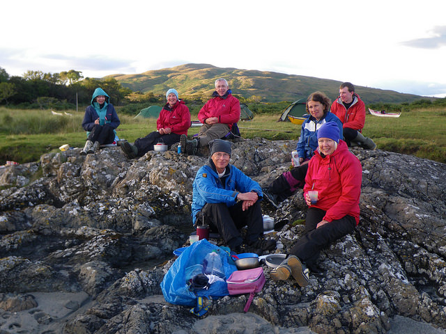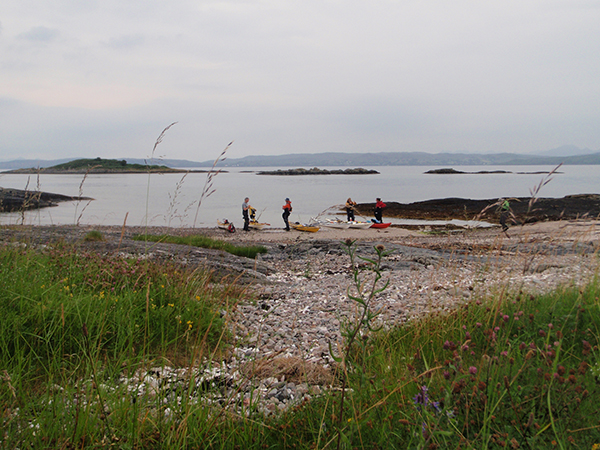 The day finished at Port na Crullach, just short of the entrance to Loch Spelve. The breeze kept up and thus midges at bay, an otter was spotted offshore and the evening finished with a campfire. |