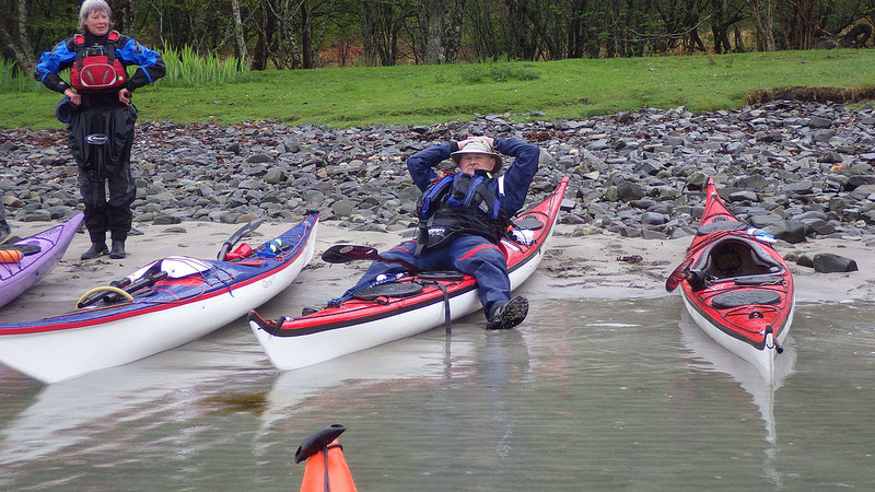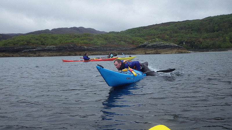 Twenty hardy souls attended the rescue day on 4th May. We paddled around from Glenuig and landed at Samalaman where Mike and John gave us an excellent demonstration of assisted rescue. We then split into groups of three or four and practised bracing and towing before landing for lunch on the beach. The afternoon consisted of capsize rescues, cowboys and all manners of getting back in a boat. Enthusiasm was boundless and it was difficult to get everyone to call it a day. A few finished off with a trip around the island.