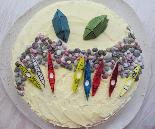 Saturday dawned true to the forecast with strong westerlies and horizontal rain! Plans to paddle in Loch Duich were quickly abandoned in favour of walking. Team Laidler/Carter/Smith opted for a low level walk from the head of Loch Slapin through Strath Mhor to Luib, returning to Torrin via Strollamus and Strath Beag, a journey of some 18km. Team Wild/Broadhead (more experienced mountain folk!) decided to walk/climb further north on the island. The numbers were swollen on Saturday afternoon by the arrival of Kirsty Bloom and her daughters, who kept the company on their toes designing sweaters! (Roger Wild’s design incorporating the M&DCC logo won the day!). Kirsty's "Kayak Cake" went down extremely well!!!