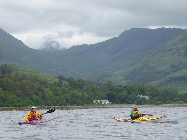 A select group of three, Bill, Elvire and I, set off from Seagull Island on the north side of Loch Leven and took advantage of the outgoing tide to paddle towards Ballachulish. It was mostly sunny and the views were good. We thought Elvire's skills were needed at the narrows when we saw some divers dragging one of their party onto the beach and then doing CPR, but it turned out, they were just practicing, so we carried on. We had morning coffee near the Glencoe Boathouse and lunch on the Burial Islands before getting a push from both the wind and the tide to take us back to our starting point. Lovely relaxing paddle. About 18k.