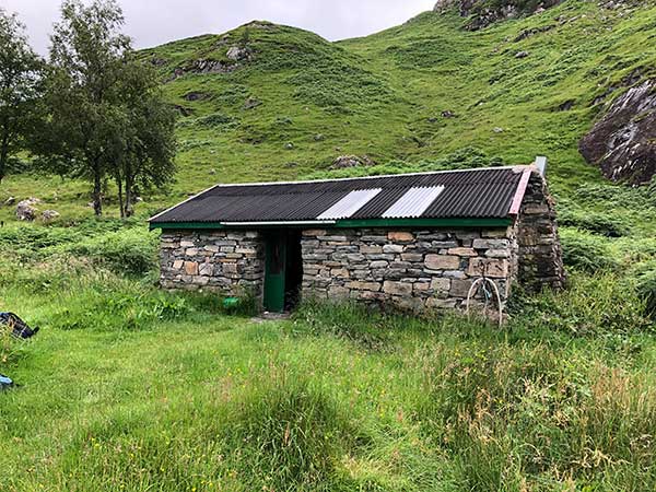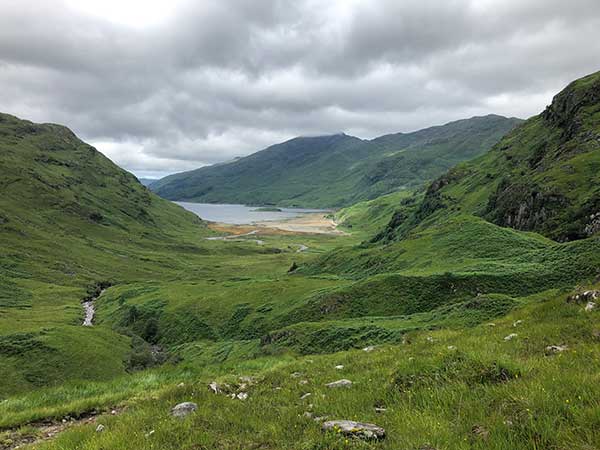 On Saturday low cloud on the tops meant that we did not climb our intended hill, Sgurr na Ciche, however we had an enjoyable walk past Sourlies bothy and up the well engineered path to Lochan a’ Mhaim. Back at the campsite we opted to stay another night as the wind blowing up the loch was not inviting.