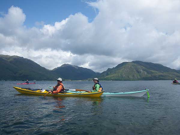 On Sunday the paddlers set off from Torridon village to circumnavigate Upper Loch Torridon surrounded by a magnificent ring of mountains many of which are Munroes. Paddling up the south shore of the loch they passed the many “obs” or bays which cut into the gently sloping foothills. The group had lunch at Camas an Leim before crossing to the north shore of the loch and past Inveralligin en route for the take out at Torridon.