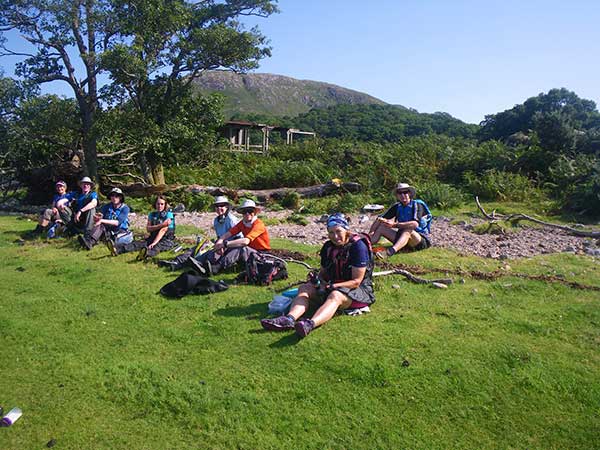 After an overcast launch, the weather brightened as we crossed the loch from Rubha an Daraich to Eilean Rarsaigh and we enjoyed a delightful journey along the islands on the loch’s northern coastline with Common Terns, Common Seals and Red and Roe deer on view. Arriving at Corran (just east of Arnisdale) we were just in time for the opening of The Hut and we were soon scoffing excellent cake, coffee and similar delights. We walked the short distance to the modern village hall where there was a display of old local photographs in this excellent local facility. Donations to its upkeep were readily given by grateful kayakers.