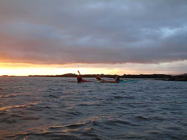 Due to diminishing light, the group took the decision to cut through the skerries instead of going around Luinga Mhor and back down the south channel, as originally planned, and were rewarded with shelter from the wind and a spectacular sunset over the skerries. After pausing to take it all in we rejoined the south channel for a steady paddle home, with just enough light to pack our kit away for the drive home.