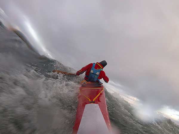 After an hour or so of paddling, the group took a short break in a settled area of water, where we noted that conditions had picked up a little due to the exposed area of coastline we’d reached.