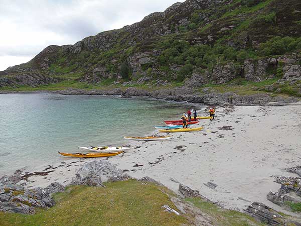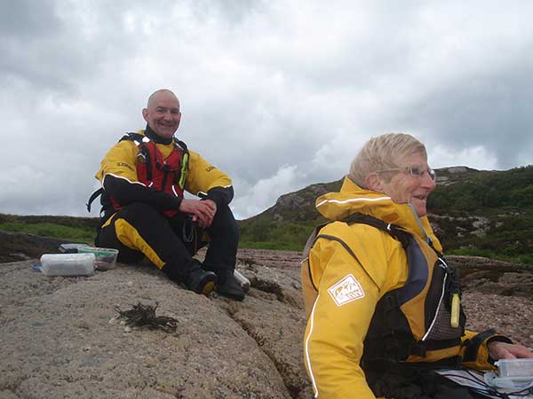 Due to a forecast of strong winds and swell, the planned trip to the north east coast was changed to Torridon. Unbeknown to the four members who had signed up for the trip the Celtman ultimate Triathlon was also taking place at Torridon on the same weekend. So when they gathered at the Council run campsite at Torridon on Friday afternoon they found the small area awash with cars, campervans and serious looking athletes with their support crews! However, enough tent space was found, and they foregathered in the party tent to plan the next two day paddles.