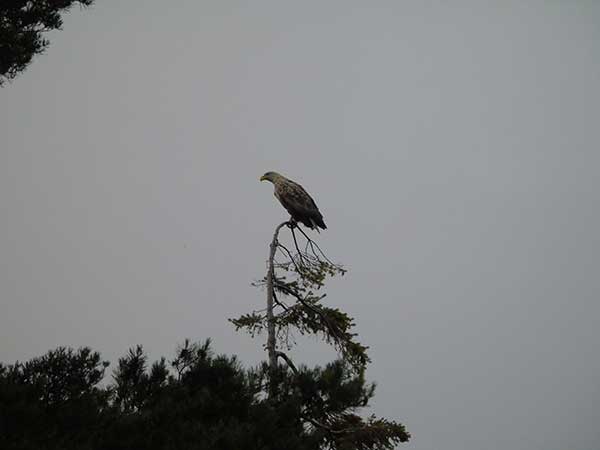 The new paddlers soon settled into their boats, and the conditions, and very much enjoyed exploring the islands, before being graced by the appearance of a sea eagle, this put everyone on a high for the short paddle back to the cars, where the midges were out in force and waiting for fresh victims, so we quickly loaded up, said our farewells, and headed home.