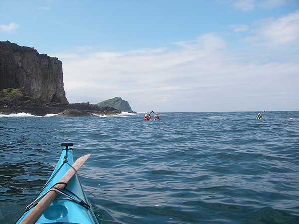 After forecasts leading up to June 5th had threatened to force a postponement, an eight strong group of paddlers were pleasantly surprised to find good conditions upon their arrival at Glenuig, so after a pre trip briefing they took to the water on a gentle swell.