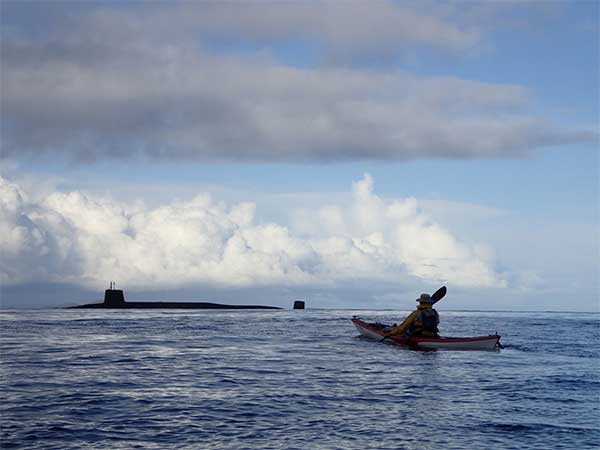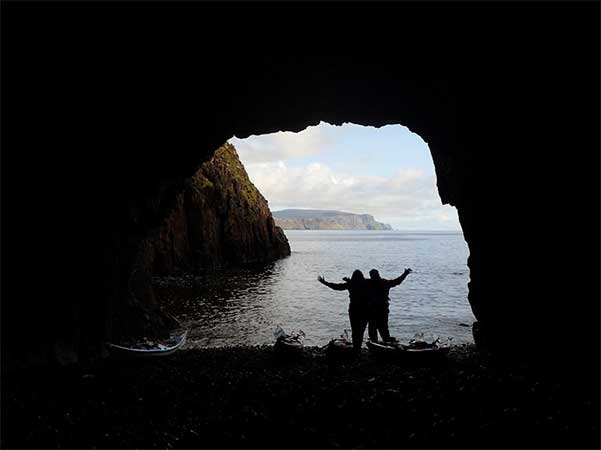 The last trip on the club calendar for the year was billed as a "remote overnighter" with high hopes for a two or three day journey with a wild camp in a spectacular location but the forecast unfortunately didn’t seem to suggest that this was possible. We abandoned that plan and decided to make it a campsite based trip and it turned out to be a fantastic weekend of paddling anyway! Five of us met up at lunchtime on the Friday at Duntulm on Skye for a short paddle around the most northerly point on the island, Rubha Hunish. Calm conditions allowed us to enjoy the caves that we could get into with a low spring tide and some rockhopping along the intricate coastline, but what took everyone by surprise was the sight of a nuclear submarine silently cruising by. Everyone arrived in the near-dark at Dunvegan campsite and after putting up tents and cooking dinner we were treated to a showing of the northern lights over Dunvegan. A spectacular end to a fantastic day!