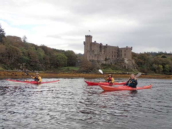 On Sunday the desire of the group was to set off from the campsite to Stein on a one way paddle. We shuttled cars and found the carpark at Stein bustling with the Sunday morning wild swimming group, we found a spot to park and returned to the campsite. From there we headed off up Loch Dunvegan past some nervous groups of seals and the grey hulk of Dunvegan Castle. The wind picked up on the way to lunch at the Coral Beaches, where plenty of walkers were enjoying exploring the seashore in the very low tide. Some were clearly looking for clackers, (scallops) but were disappointed. With the wind subsiding, the paddlers rounded the coastline and headed across Loch Bay to finish up a wonderful weekend of paddling at Stein. We went for a cup of tea at the Inn and found that it had been taken over this year by chef Paul Rankin. Will have to go back to eat sometime. Thanks to all who came on the paddle and helped to make it so memorable. Peter, Alison, John and Kirsty along with me, Mike. Commiserations to those that had to drop out, don't kick yourself too hard, there's always next year! |