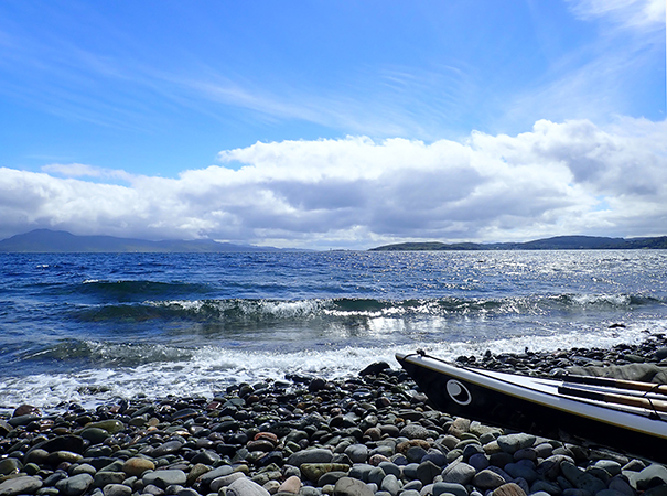 With an early start on Saturday morning the weather looked more promising, the wind was not so strong and it pushed us northeast towards the narrows. We stopped at Bagh Dunan Ruadh for a bite before paddling through Kyle Rhea just after the tide started to flow north. We had a smooth passage through the narrows and we stopped again at Rubha Buidhe before finishing at Kyleakin. All in a morning’s work. |