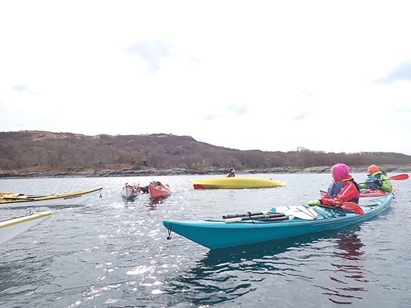 Although the rescue day was early in the year, it turned out to be good weather which meant that we weren't able to practice in difficult conditions. More people than expected decided to get wet because of this, which was good. We started from outside the Glenuig Inn and the morning was dedicated to dry activities that mostly involved different methods of towing. We worked our way around the bay to Samalaman. We lunched on Samalaman Island then continued with a bit of practice doing short tows to extract victims stuck in rocky shoreline, then onto self rescues and rescuing others. Some people were new to this and took to it like old pros. We even tried paddle presentation rescues of a capsized kayaker. Everyone retired to the Inn for some warming drinks and scones and a quick discussion of the day. It was decided that we really ought to have another rescue day soon. It's great to see members enthused, having enjoyed the day. We hope to organise another rescue day very soon.