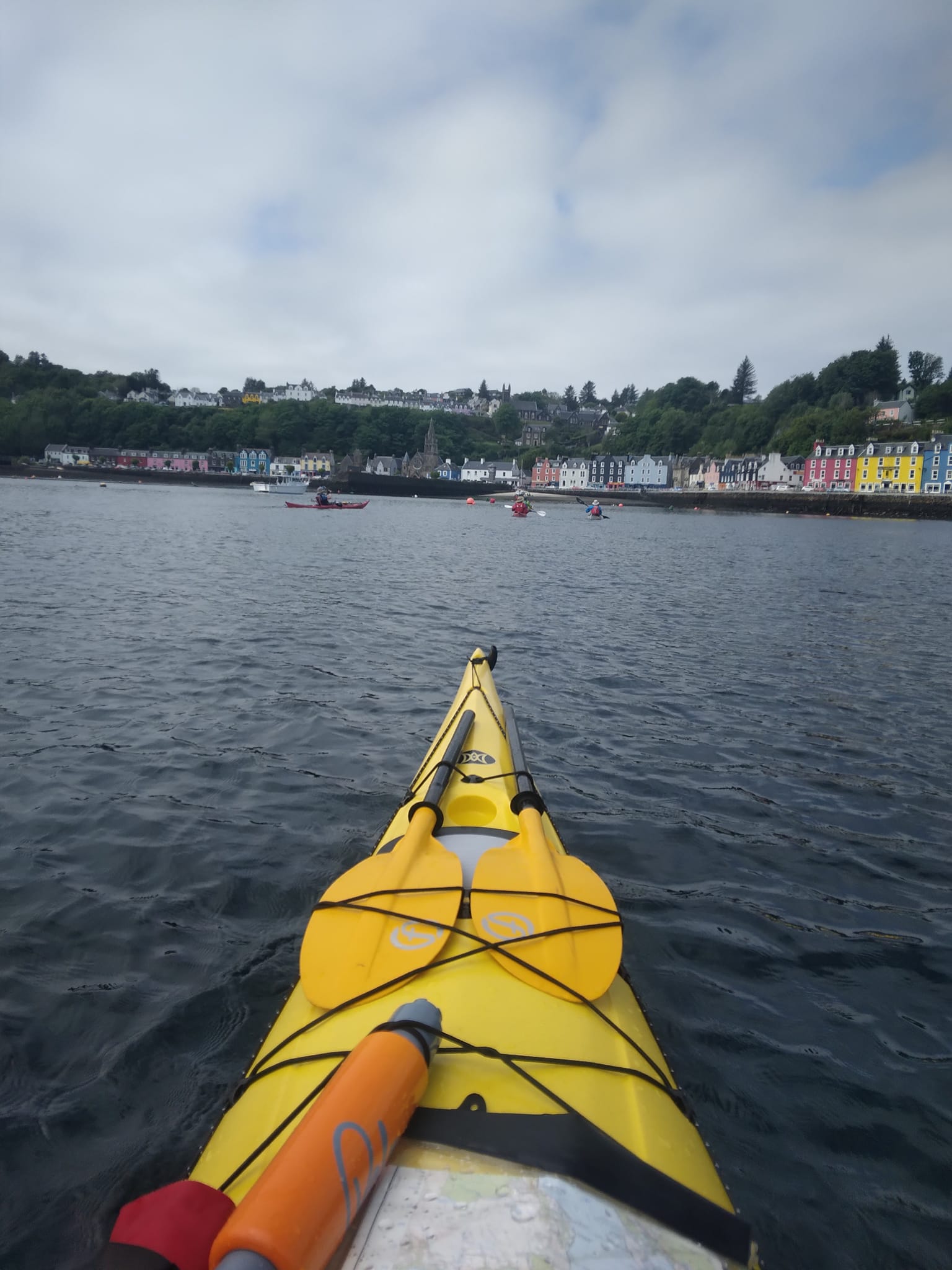 Bill, Elvire, Peter S, Chris and I paddled over to Tobermory from Glenborrodale via Auliston Point on Sunday. Crossing the Sound of Mull was great and approaching the gap between Calve Island and Mainland Mull, we did wonder if we'd get through. We did but only just. Approaching Tob by sea is surely the best way to appreciate it. After lunch and an ice cream we headed straight back to Auliston and then on to Glenborrodale. Unexpectedly a bit of wind blew up but it was not a problem and after practicing "difficult" landings (why take the easy beach!), we headed over to our starting point. About 26k of lovely paddling.