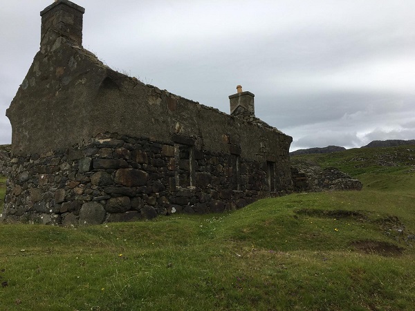 Stopping at Lettermorar we walked up to the ruins of the little cottage clad in corrugated iron. It was sad to see the remains of furniture and cooking utensils lying amid the broken-down wood lining and rusting corrugated iron and the place seems to echo with the lives once lived there.