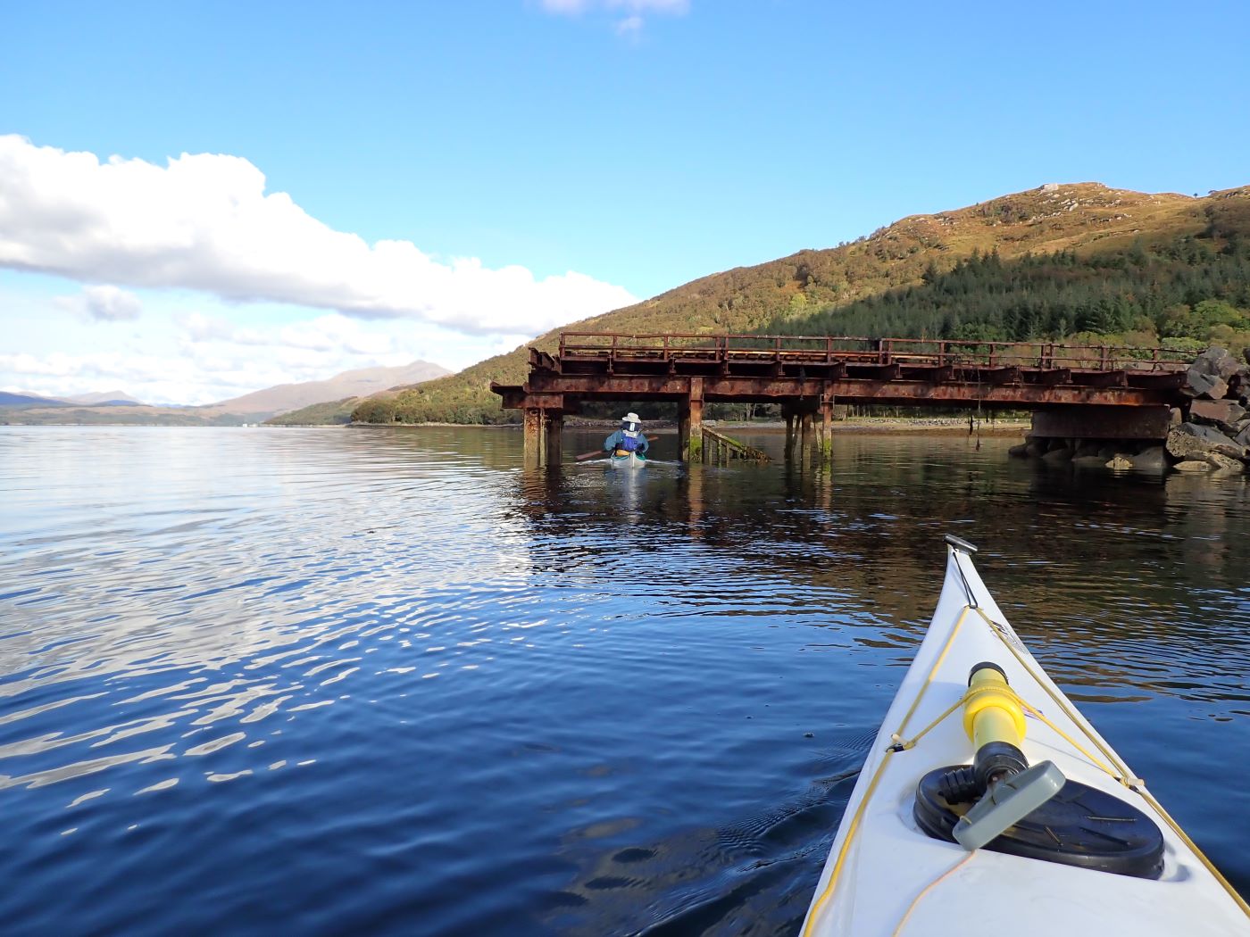 The second evening a week later was held in Fort William. Again, four members put in behind the college and practised boat handling skills including turning in the wind, effective strokes for turning, moving sideways, edging the boat to aid the turn and body position. After playing some games around the diving school pier concrete pillars the group paddled up to where the river Lochy meets the sea with water also coming in from the Aluminium factory outflow and the river Nevis. Here they practised crossing eddy lines and ferry gliding. Again, thanks to Janek for the coaching!