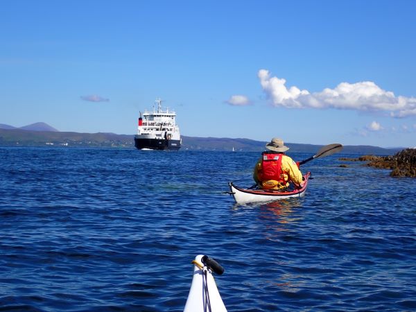 One of the notional paddles (no date assigned) included on the club calendar was a circumnavigation of the isle of Muck taking the ferry out from Mallaig. Of necessity such a trip has to be at short notice due to needing good weather. Having chosen the dates 9-11th July we were delighted that the forecast seemed to be in our favour! However the weather Gods had other ideas and two days prior to departure the forecast for Muck was for F5/6/7 winds from the north and heavy rain�.not an inviting prospect! So, ferry tickets cancelled and a quick email round it was decided to do a one-day paddle to Sandaig on the north shore of Loch Nevis.